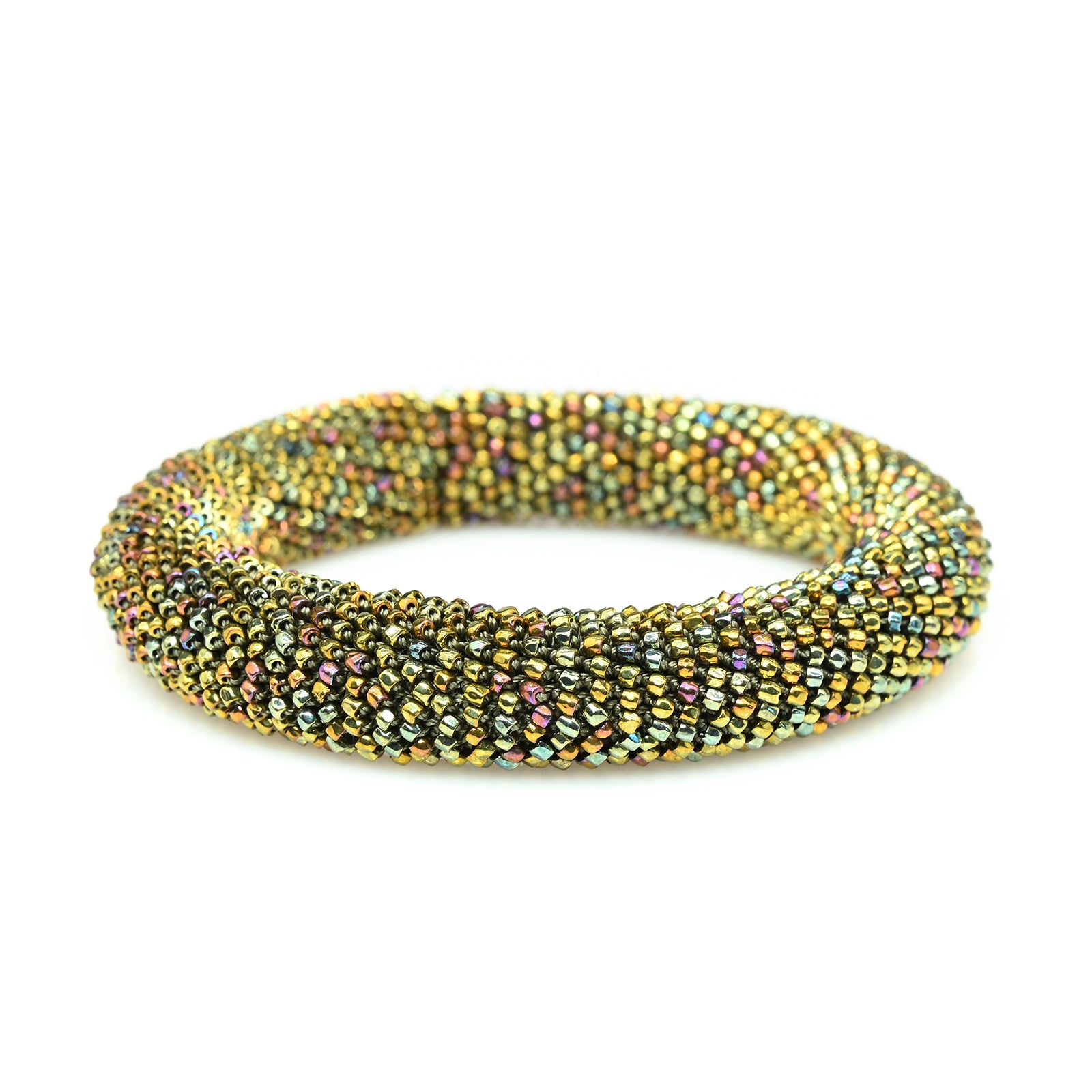 - The cut beads create a wonderful texture and a subtle sparkle. The bracelet is very light and soft and stretches to roll over your wrist.