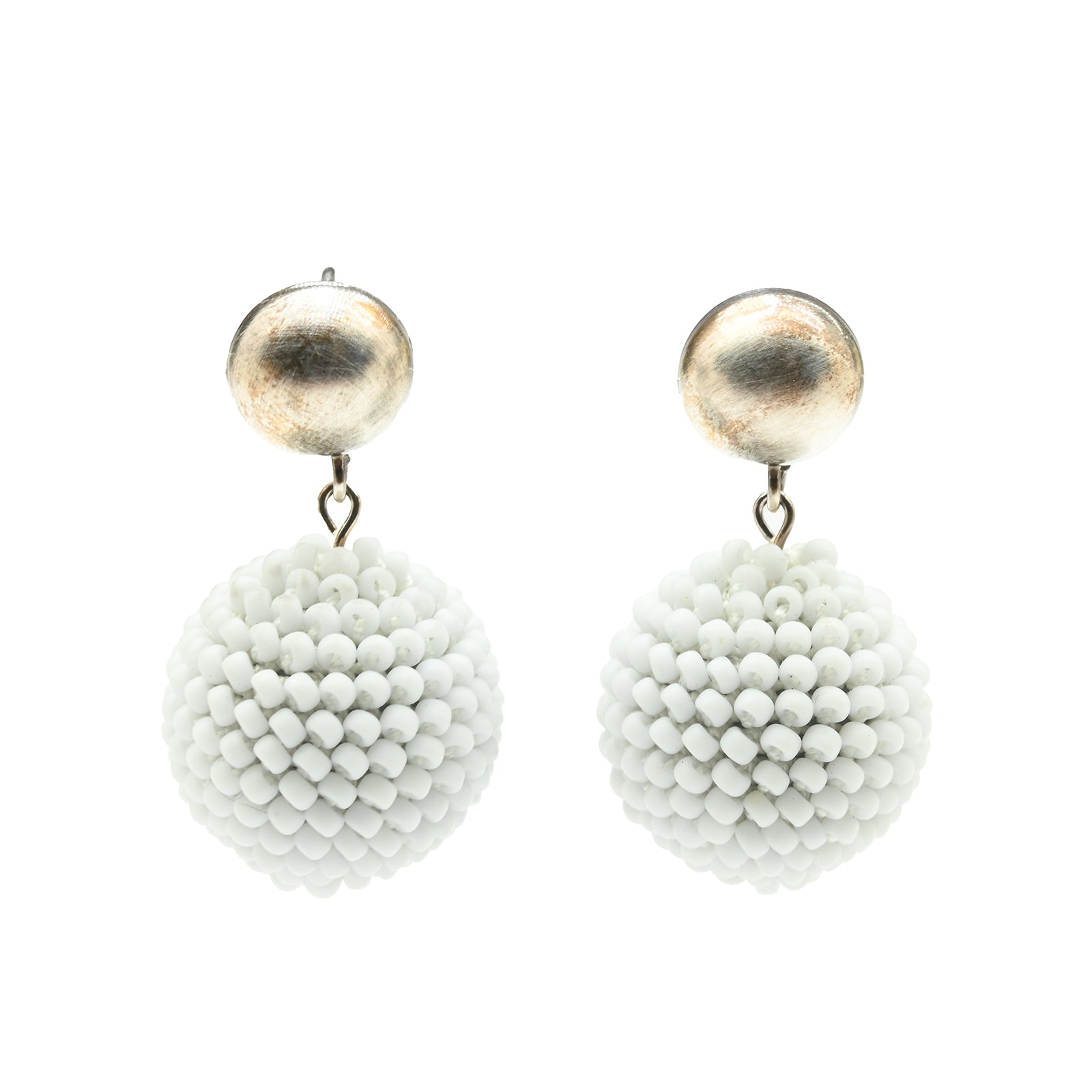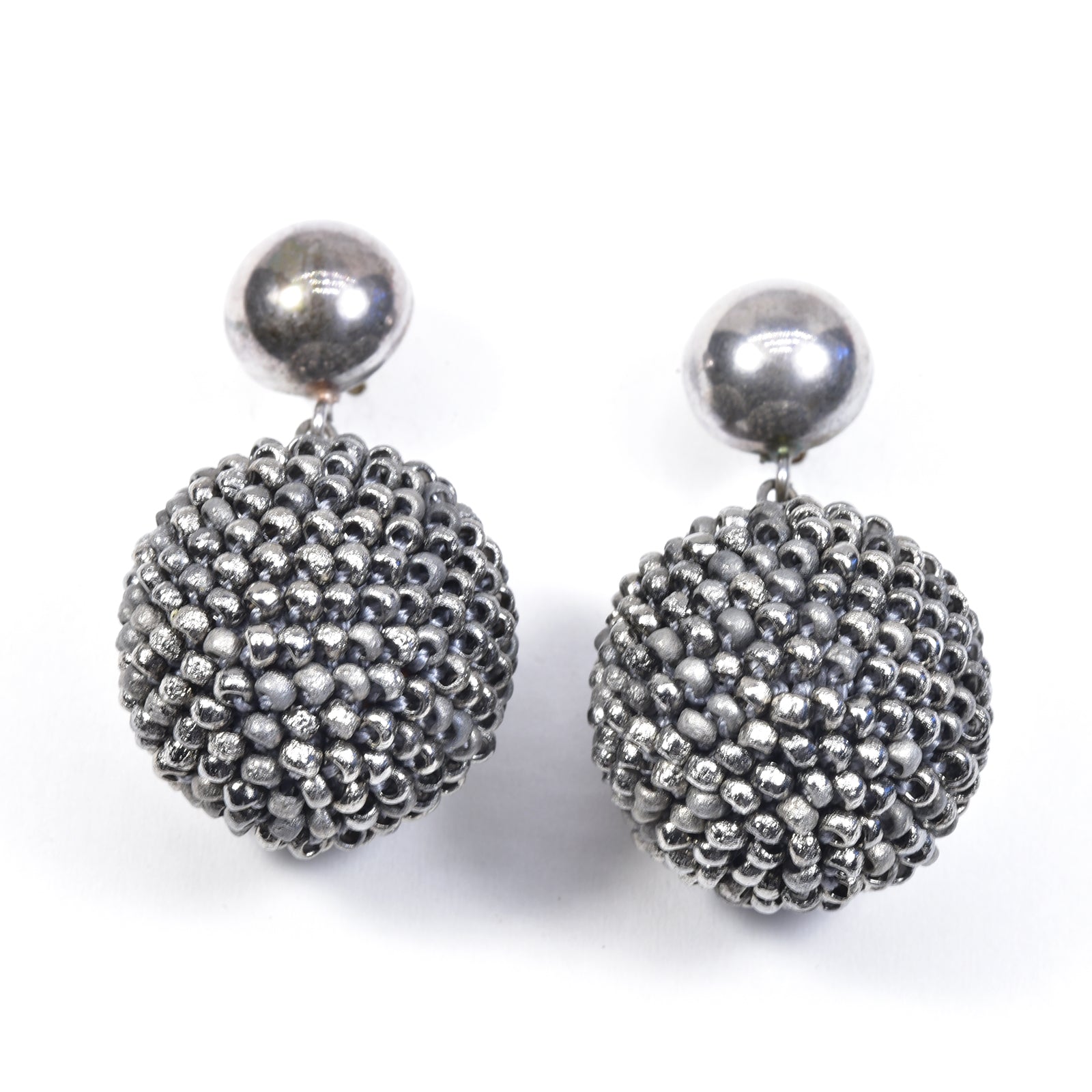 10mm sterling silver dome and 20mm beaded ball. The earrings are 35mm long. Please specify whether you prefer bright or oxidized silver finish.