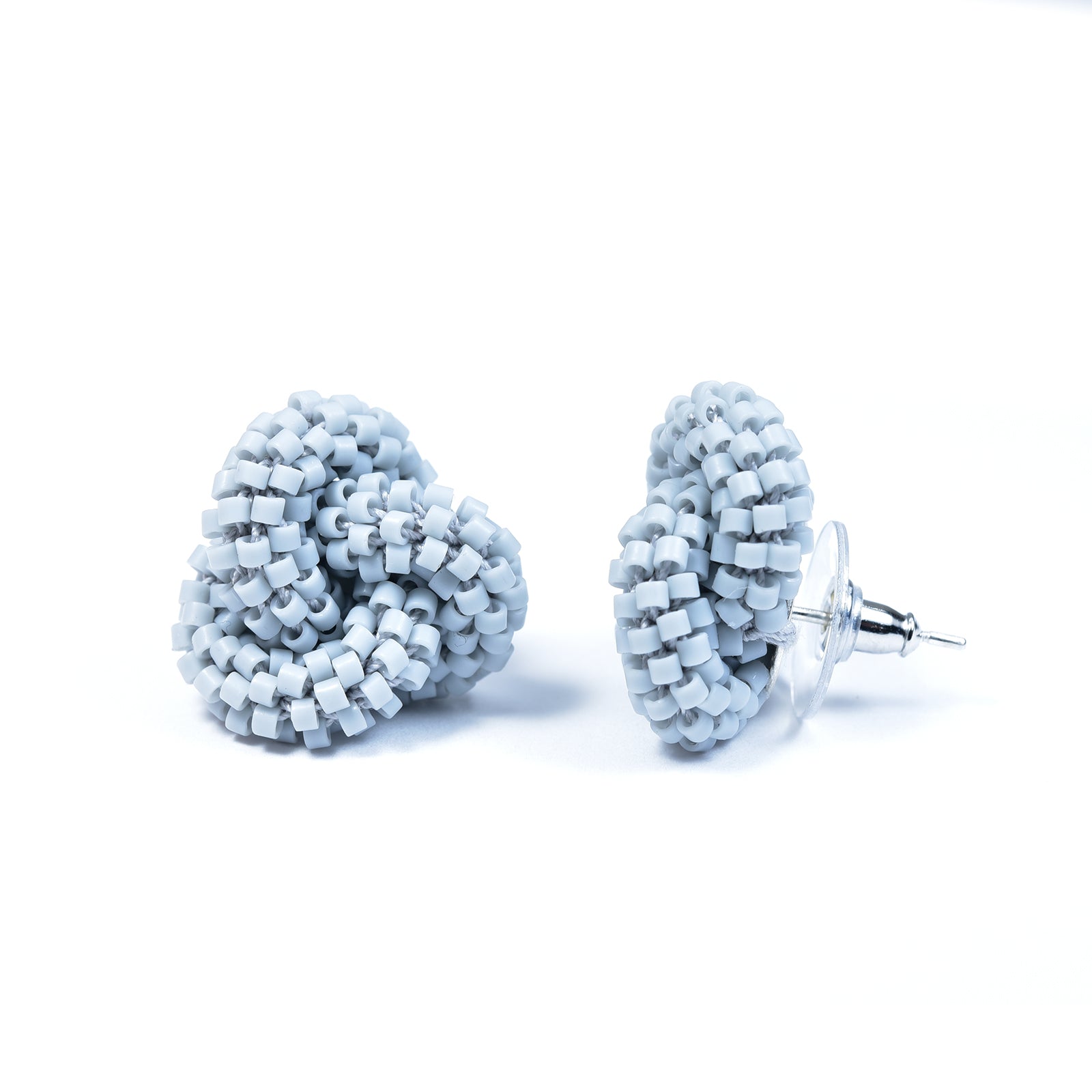 Japanese cylinder beads are crocheted into a soft rope and formed into a knot. The earrings are very light. They are attached to a sterling silver post and come with a wide earnut to ensure they don't droop down. Knots measure 18mm wide.