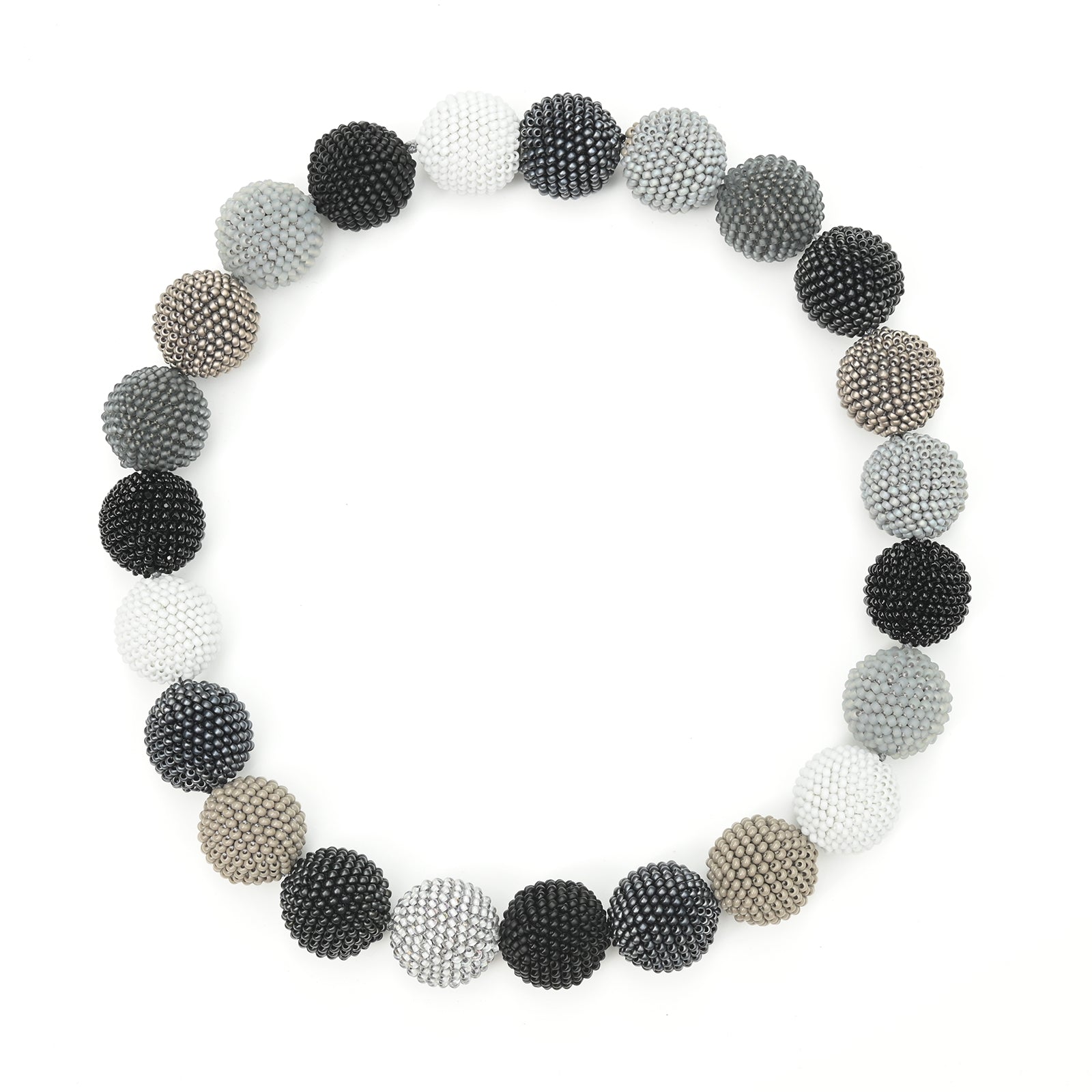 Beaded Bead Necklace in Shades of Gray