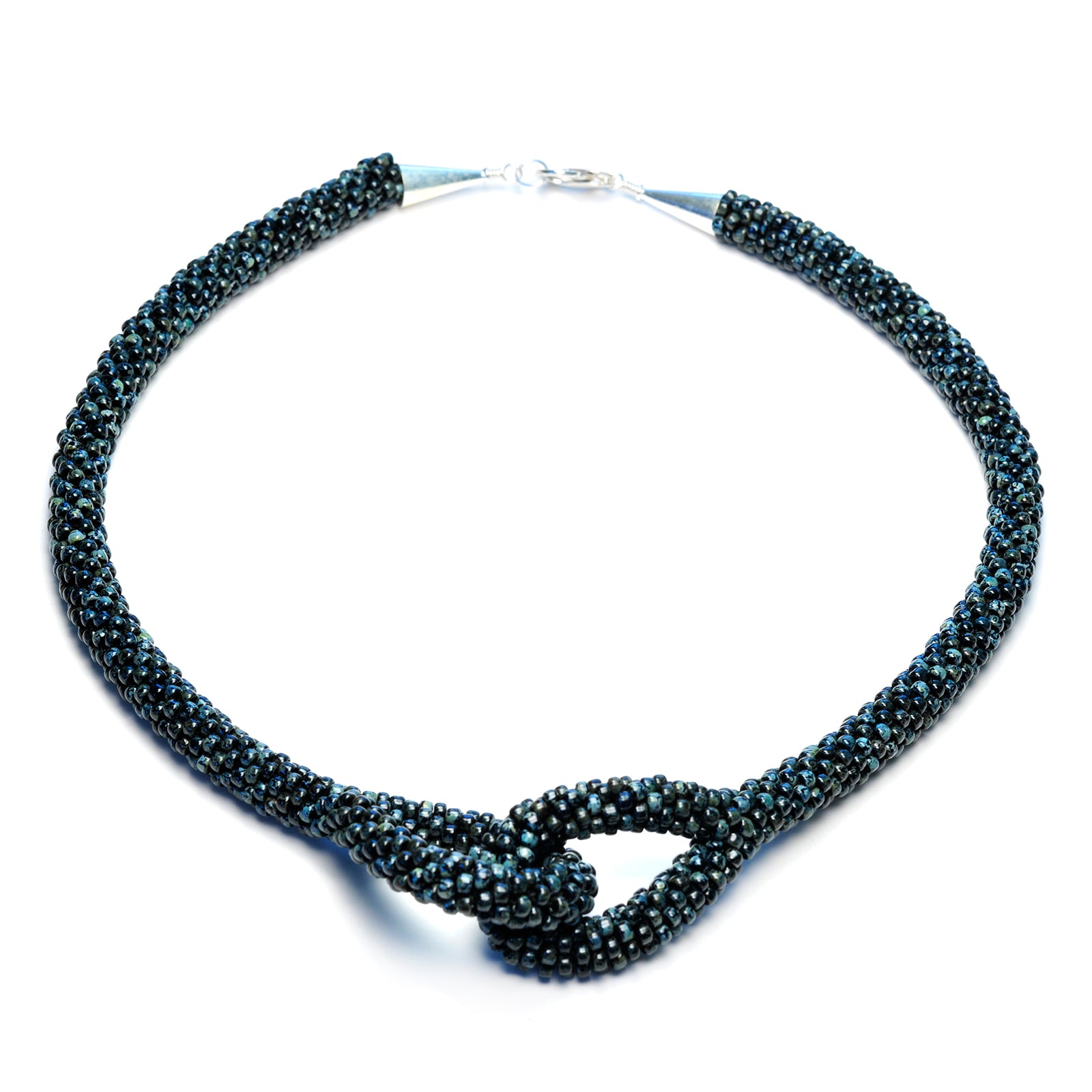 - Japanese glass beads, nylon thread, sterling silver