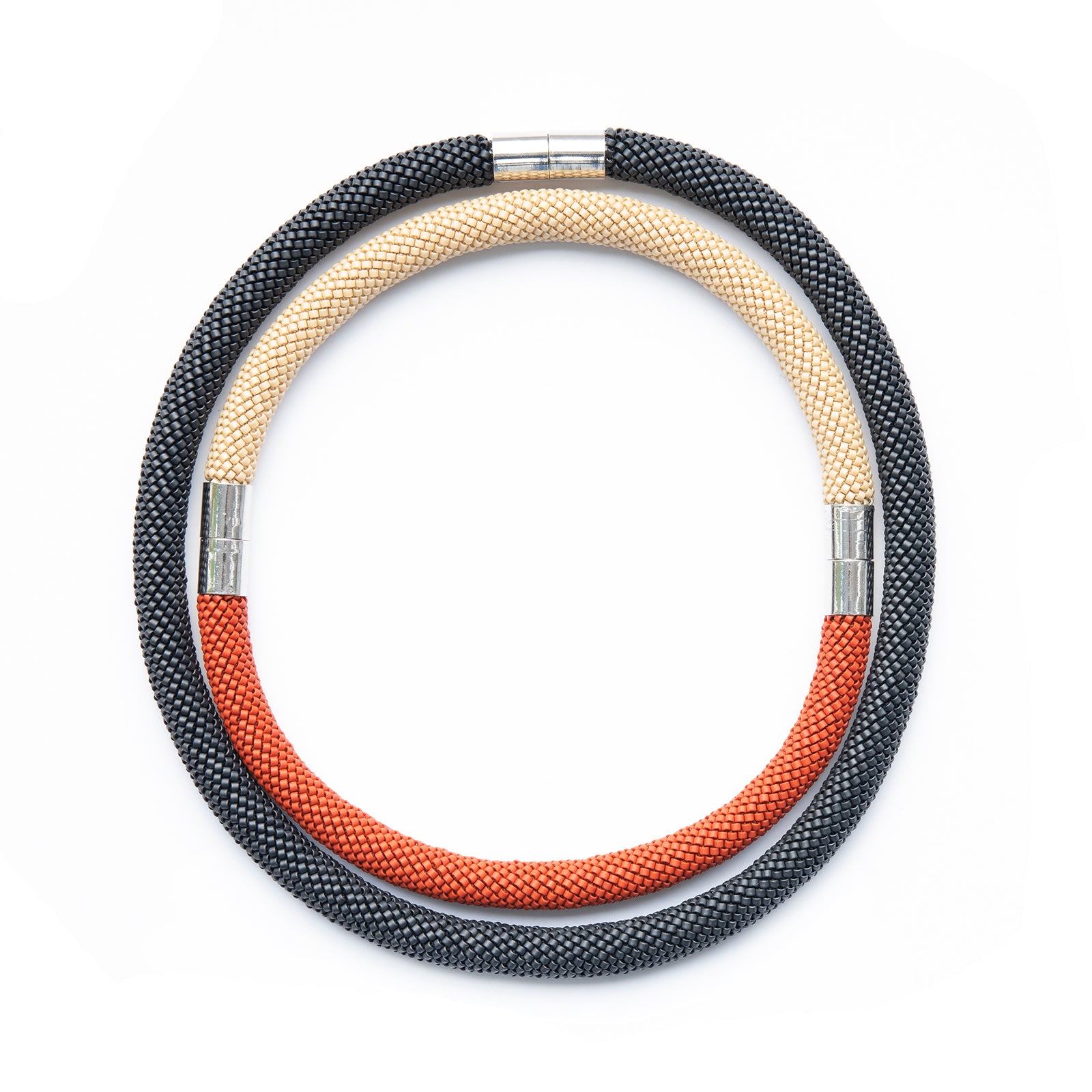 - Japanese cylinder beads, polyester thread, magnetic clasp